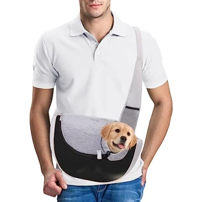 PETCUTE Pet Sling Carrier,Hands free Small Pouch Bag,Breathable Cat Dog Carrier Bag,Front Pocket,Shoulder Tote Bag for Animals,Dog,Cat,Outdoor Travel,Walking,Hiking,Black,S