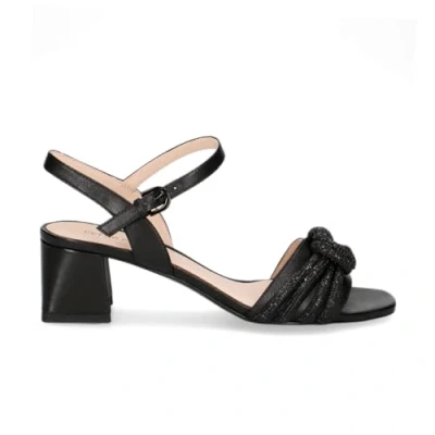 Metal clasp Block heel Jewellery appliqué with black rhinestones Stretch insert