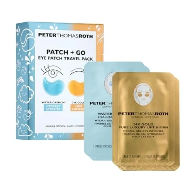 Peter Thomas Roth Holiday Kit Hydra Gel Travel Pack 4 Pairs (2x Water Drench + 2x 24K Gold) Luxury Under Eye Patches with Hyaluronic Acid, Collagen & Gold Hydrating, Firming Brightening