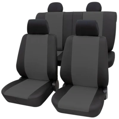 Universally suitable for car seats and available as a complete set or front seat set. Increased safety thanks to tear seam for vehicles with side airbags and flame retardant material. With decorative quilted seams, coloured side panels made of breathable spacer fabric. Middle section and sides: 100% polyester jersey, laminated; back and border: 100% polyester jersey Tested quality, light-fastness tested according to DIN 75202, abrasion resistance tested according to RAL-RG 439