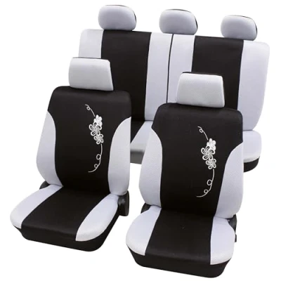 PETEX Car Seat Covers Universal Complete Set 17 Pieces Flower White Eco Class with SAB 1 Vario Plus