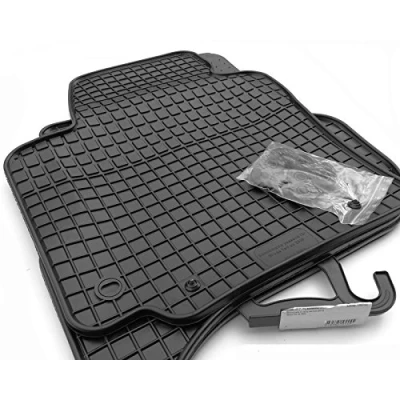 Rubber mat set - protection for the interior 100% perfect fit, high all-round edge, washable, waterproof, very durable, odourless, beautiful design Colour: black – matches the interior. Box contents: 4-piece set with attachment points Made in the EU Suitable for Skoda Yeti (all models) from 2009 onwards