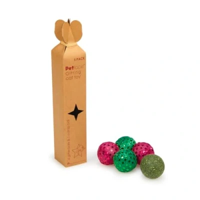 ASSORTED TOYS: Treat your feline friend this Christmas to the Petface 5 pack of cat ball toys presented in a kraft gift box. The box contains 4 glitter balls and 1 catnip ball. CATNIP TEASING: The added catnip offers an extra element of excitement, encouraging interactive play and exercise FEATURES: Designed to engage your pet's natural instincts, providing both entertainment and exercise for hours on end QUALITY MATERIALS: Made from high-quality materials ensuring durability for long-lasting entertainment and fun playtime sessions TOY SAFETY: This toy is strong but not indestructible, and will eventually become susceptible to ‘claw’ damage, please supervise your pet with this toy, examine regularly for wear, and replace if any damage could be seen a health hazard
