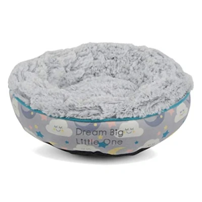 COMFORT: Your furry friend will love the soft and cosy donut bed, featuring a fleece outer and faux fur cushion for a super snuggly place to sleep, relax and unwind LUXURIOUS: Made by Petface (Little Petface), known for quality kitten and puppy beds, with ‘Dream Big Little One’ beautifully embroidered onto the side FEATURES: A round donut shape provides a sense of security, perfect for small pets seeking warmth and comfort, with an anti-slip base to prevent sliding HIGH-QUALITY: Crafted with premium materials for long-lasting durability and style, measuring approximately 45cm x 45cm x 12cm to suit smaller pets VERSATILE USAGE: Suitable for kittens, cats or puppies and machine washable at 30 degrees (low spin), ideal for placing in any room to create a cosy retreat