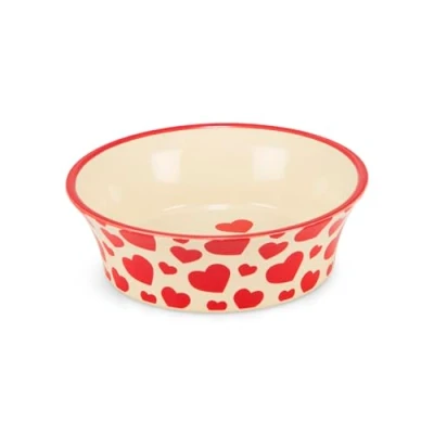 Petface Red Hearts Flared Ceramic Bowl for Cats