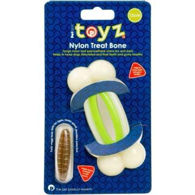 This Toyz Nylon Treat Bone Chew Toy is great for keeping your dog simulated and their teeth and gums healthy. Great for fun games on land and in the water. Perfect for retrievers at heart!. Tough TRP rubber chew and treat dispenser. Helps to keep dogs stimulated and their teeth and gums healthy. H x 12 W x 5cm (approx)