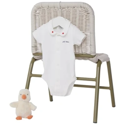 Petit Bateau Baby A0CPR Short Sleeve Bodysuit with Collar, White, 0 3 Months