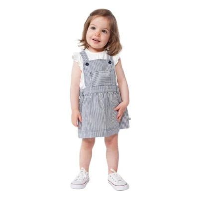 Petit Bateau Baby Girls' A0CLH Overall Dress, Blue/White, 12 Months