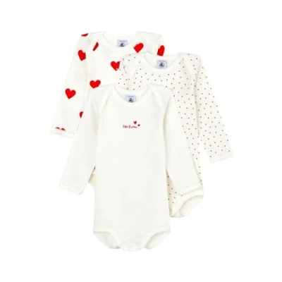 Set of 3 rib bodysuits, the iconic material of Petit Bateau Very practical thanks to the American neckline and snaps at the crotch Organic cotton guarantees non-GMO soil-friendly cultivation