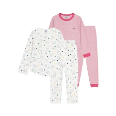 Set of 2 girls' pyjamas in rib 1X1, a stretchy and comfortable material The first pyjamas are in 1x1 rib with a fairy print The second pyjamas are in 1x1 ribbed stripes milleraies