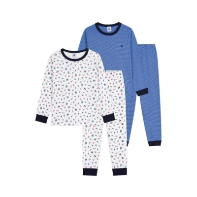 Petit Bateau Lot de Pyjamas Enfant en Coton imprimé White
