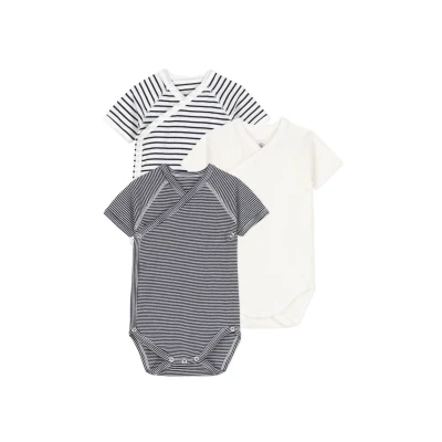 Petit Bateau Short Sleeve 3 PACK SET Body for kids, Size: PRE, Navy white