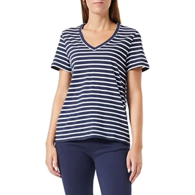 Petit Bateau Women’s Short Sleeve T Shirt, Blue Smoking / White Marshmallow, I