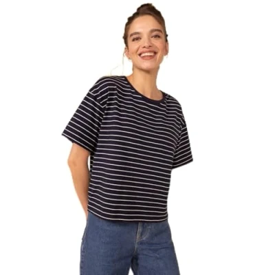 Petit Bateau Women’s Short Sleeve T Shirt, Blue Smoking / White Marshmallow, M