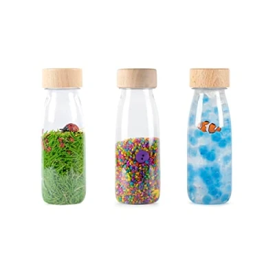Pack Eco – Discover nature with the Eco Pack! This sensory bottle set gives children the opportunity to explore the different ecosystems that exist on Earth. From insects to fish, each bottle creates a fascinating atmosphere full of sounds and textures. It is an educational and fun experience that stimulates the curiosity and concentration of the little ones! Ladybirds sound bottle - This sensory bottle is a world full of small creatures with wings. Children can explore the insects and sounds they emit while watching the movement of the balls inside the bottle. Sound bottle buttons - This sensory bottle creates a colourful and sonorous atmosphere. Children can explore the different colours and sounds emitted by the buttons as they watch their movement in the bottle. Fish sound bottle - This sensory bottle is a magical aquarium full of small goldfish. Children can explore the different sounds and colours that fish emit while watching their movement in the bottle. Bottle measures 14cm x 4cm, Manufacturer: PETIT BOUM