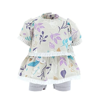 The outfit consists of a t-shirt and a floral skirt, grey shorts and a purple bow for the hair. For Minette Doll 27 cm For ages 18 months and over, Manufacturer: PETITCOLLIN