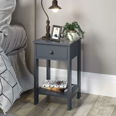 Petite Bedside Table 1 Drawer Nightstand Cabinet Blue Shelf Storage