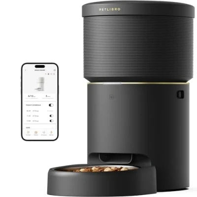 Two-In-One Solution: The PETLIBRO Space Automatic Pet Feeder is a two-in-one solution for feeding and food storage. With its dual functionality as an automatic feeder and vacuum food storage container, this innovative product not only provides pet owners with enhanced convenience in feeding their pets but also guarantees that pets receive fresh and nourishing meals without delay. Vacuum Sealing Technology: PETLIBRO's unique vacuum sealing technology creates a -20KPa low-pressure, low-oxygen environment to inhibit oxidation by using a vacuum pump to pump out air. Not only is it ideal for saying goodbye to ant infestations, but it also keeps every coarsely ground food fresh. The original nutritional value and crispy taste are maintained to allow fur companions to always have healthy meals. Upgraded Smart App Control: The automatic cat food dispenser supports 5GHz and 2.4GHz WiFi networks, allowing you to easily set your pet's daily feeding goal in the app and record the portions and times of meals per day. Even when you are busy outside, you don't have to worry about your pet's diet. Universal for Cats and Dogs: This super-large pet feeder can store 34 cups of food, which accommodates the eating habits of cats and dogs. It has a large 187mm stainless steel food bowl and can fit large kibble with a maximum diameter of 18mm, which can allow cats and dogs to eat happily and comfortably. Never worry about whisker fatigue in cats. Pet Meal Planner: The app helps to monitor the feeding status of each meal and ensure a balanced diet for pets. The PETLIBRO timed cat feeder lets you set up 1–10 meals per day, with up to 48 portions per meal (1/12 cup each). Check the feeding logs through the smart app to ensure that your pets are fed according to the set schedule.