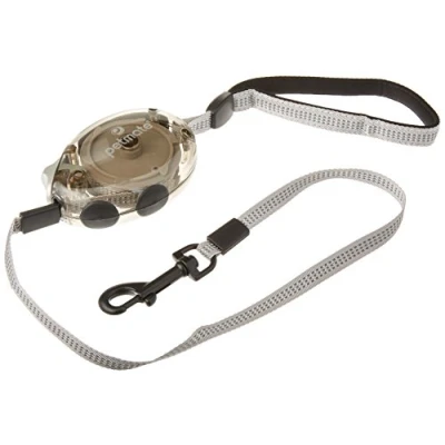 Translucent palm retractable compact design provides pet owners with a smaller alternative to standard retractable leashes Fits easily in the palm of a hand, purse or pocket Retracts out to six feet Useful for dogs and puppies Available in medium size that is ideal for pet upto 44 pounds