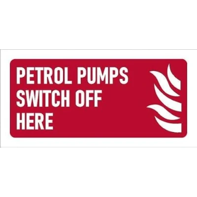 Petrol pumps switch off here, safety sign. Self adhesive sticker. Printed using the latest digital technology and laminated for extra durability. Remove backing film and apply to dry, smooth, oil free surface. All signs come with a 5-year warranty.