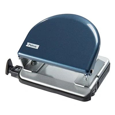Perforates up to 20 sheets of paper (80 g/m²), for office use, bicolor blue and silver Clear format markings and sturdy guide bar ensure perfect alignment of the sheets Sharper punches reduce drilling effort with a sleek chrome finish 10 years warranty, easy to empty, 2 holes with distance of 8 cm, punch diameter 5.5; mm Contents: 1 petrus classic metal punch, blue/silver, 20 sheets, 33759