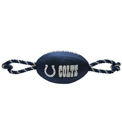 Pets First NFL INDIANAPOLIS COLTS Nylon Football Dog TOY with inner SQUEAKER & Pull Ropes PET SPORTS