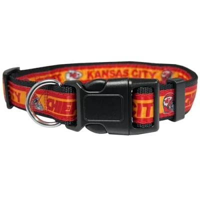 Pets First NFL Kansas City Chiefs Licensed PET COLLAR, Medium Heavy Duty, Strong, and Durable Dog Collar. Available in 31 Football Teams 4 Sizes