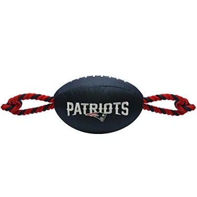 Pets First NFL NEW ENGLAND PATRIOTS Nylon Football Dog TOY with inner SQUEAKER & Pull Ropes PET SPORTS
