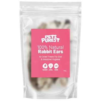 DOGS LOVE THEM: Pets Purest Rabbit Ears with Fur are the delicious all-natural dog treats you and your four-legged friend have been looking for. With 5-7 tasty 100% rabbit ears per pack, they are the perfect daily treat for a well behaved dog. Woof! NATURALLY AIR-DRIED RABBIT EARS: Unlike other air-dried chews, we use a chemical free air drying process that's better for your furry best friend. Our protein packed chews are free from any additives and suitable for dogs with sensitive stomachs too PROMOTES DENTAL HYGIENE: A long lasting dog chew is one of the most natural ways for dogs to clean their teeth. Our furry rabbit ears for dogs are a tasty alternative dental hygiene snack that helps prevent and reduce tartar and plaque build up too FURRY BENEFITS: Apart from being grain free, gluten free, and free from any preservatives whatsoever, these low fat dog treats contain natural animal fur, which supports good intestinal hygiene. Deliciously support your canine's gut and well-being today! RE-SEALABLE BAG: Keep those raw dog treats and pet supplies fresher for longer with a resealable bag that keeps those odours safely locked inside wherever you take them. Also, due to our slower drying processes, our rabbits ears are low odour anyway