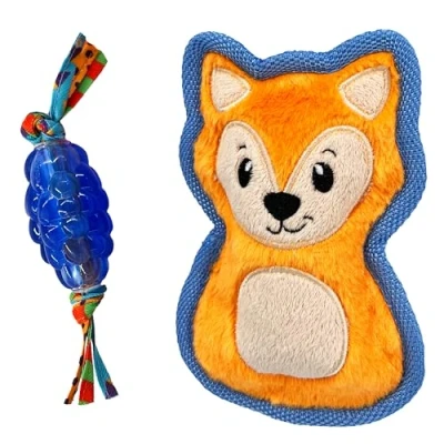 Petstages Mini Orka Dental Toy & Fox Durable Plush Dog 2 Pack