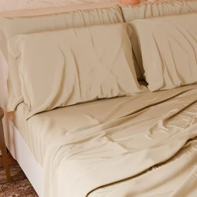PETTI Artigiani Italiani 4 Piece Maxi Double Bed Sheet Set, Soft and Breathable, Complete Set with Top Sheet, Fitted Bottom 2 Pillowcases Beige Sheets