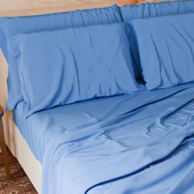 PETTI Artigiani Italiani 4 Piece Maxi Double Bed Sheet Set, Soft and Breathable, Complete Set with Top Sheet, Fitted Bottom 2 Pillowcases Light Blue Sheets