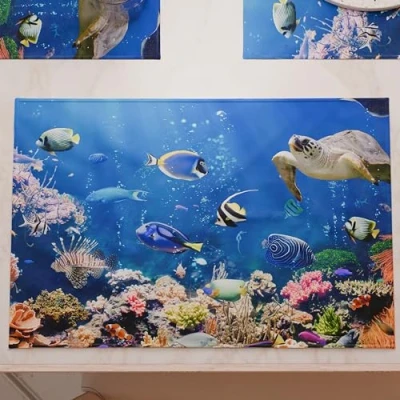 PETTI Artigiani Italiani American Placemats with Digital Print, in Fabric and Washable (Set of 6 30 x 45 cm) Aquarium, 100% Made Italy