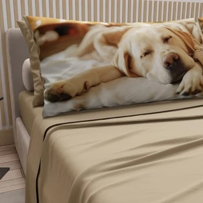 PETTI Artigiani Italiani Animal Bed Linen with Dogs in Cotton Pillowcases Digital Print, Double Sheet, Taupe, 100% Made Italy