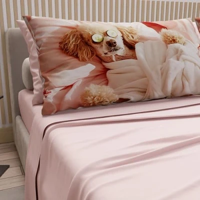 PETTI Artigiani Italiani Animal Bed Linen with Dogs in Cotton Pillowcases Digital Print, Maxi Double Beds, Powder Set, 100% Made Italy