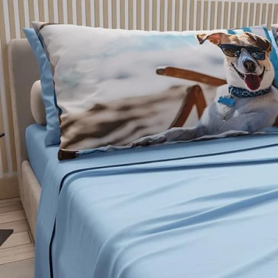 PETTI Artigiani Italiani Animal Bed Linen with Dogs in Cotton Pillowcases Digital Print, Single Sheet, Blue Set, 100% Made Italy