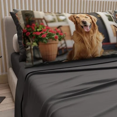 PETTI Artigiani Italiani Animal Bed Linen with Dogs in Cotton Pillowcases Digital Print, Single Sheet, Dark Grey Set, 100% Made Italy