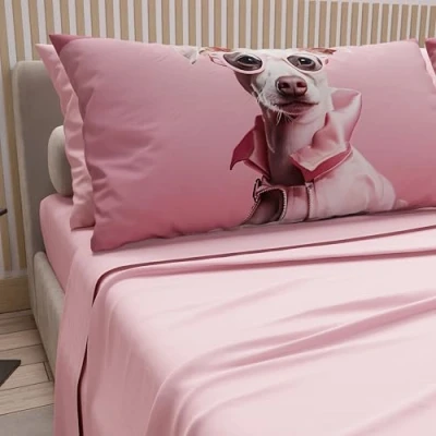 PETTI Artigiani Italiani Animal Bed Linen with Dogs in Cotton Pillowcases Digital Print, Single Sheet, Pink Set, 100% Made Italy