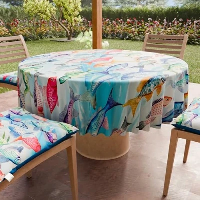 PETTI Artigiani Italiani Anti Stain Round Microfibre Tablecloth (Diameter 160 cm), Kitchen Table Cover for Table, Fishes Design, 100% Made in Italy