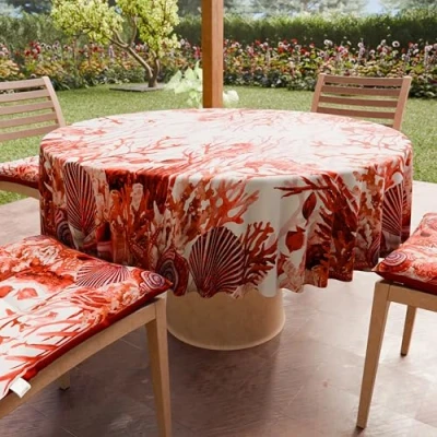 PETTI Artigiani Italiani Anti Stain Round Microfibre Tablecloth (Diameter 180 cm), Kitchen Table Cover for Table, Red Coral Design, 100% Made in Italy