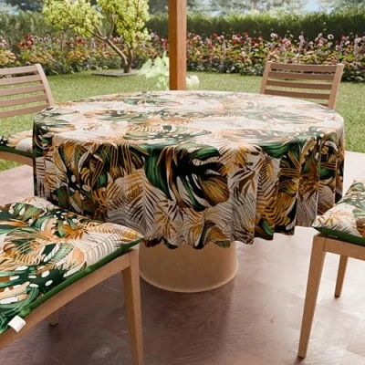 PETTI Artigiani Italiani Anti Stain Round Microfibre Tablecloth (Diameter 180 cm), Kitchen Table Cover for Table, Tropical 04 Design, 100% Made in Italy