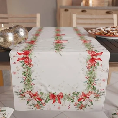 PETTI Artigiani Italiani Christmas Table Runner for Kitchen 140x40 cm, Elegant Garland Runner, 100% Made in Italy