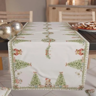 PETTI Artigiani Italiani Christmas Table Runner for Kitchen 140x40 cm, Elegant Xmas Bears, 100% Made in Italy