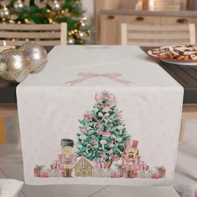 PETTI Artigiani Italiani Christmas Table Runner, Kitchen 140 x 40 cm, Elegant Pink Soldiers, 100% Made in Italy