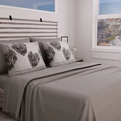 ← If you are looking for versatile and everyday sheets, with a touch of uniqueness that only a Quality Print can offer and you like the feeling of Light and Fresh fabric on your skin then you are in the right section of our catalogue With our innovative 4K Digital Printing Method at Very High Resolution, directly from the PETTI Artigiani Italiani line, here is the Solid Color Bedding Set with Print only on Pillowcases, a Bed Set specially designed to surprise you with the more than 40 designs carefully chosen by our Graphic Team This Bed Set is decorated with Digital Print on the pillowcases, while the Sheets are in Solid Color Tone on Tone maintaining a linearity in the colors to make the Set adaptable to any type of decor The Bed Completto Set is made of 100% Hypoallergenic Microfiber, Made in Italy and only natural and non-toxic products are used for the realization, therefore, our Sheets are free of harmful substances for your health The Complete Double Bed Includes: 1 Sheet Top 240 x 280 cm ; 1 Sheet Bottom 160 x 190 cm ; 2 Pillowcases 52 x 82 cm