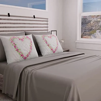 PETTI Artigiani Italiani Complete Bed Set, Double Sheets, Heart of Flower Printed on Pillowcases Only 100% Made in Italy