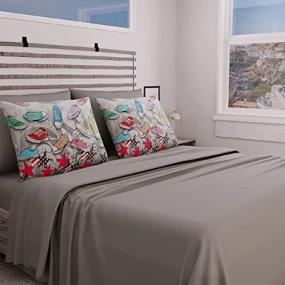 If you are looking for versatile and everyday bed sheets, with a touch of uniqueness that only a quality print can offer and you like the feel of lightweight and fresh fabric on your skin then you are in the right section of our catalogue Thanks to our innovative 4K digital printing method with very high resolution, directly from the PETTI Artigiani Italiani line, here is the complete bed sheet set in solid colour with print only on pillowcases, a bed set specially designed to surprise you with more than 40 designs carefully chosen by our team of graphic designers This bedding set is decorated with digital print on the pillowcases, while the sheets are in plain tone on tone maintaining a linearity in the colours to make the set adaptable to any type of decor Our bed set is made of 100% hypoallergenic microfibre, it is made in Italy and only natural and non-toxic products are used for the production, therefore, our bed sheets are free from substances harmful to your health The bed set includes: 1 top sheet 200 x 280 cm; 1 fitted sheet 120 x 190 cm; 1 pillowcase 52 x 82 cm
