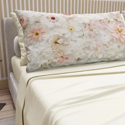 PETTI Artigiani Italiani Cotton Sheets with Pillowcases in Digital Print, Double Bed Linen, Full Set, Floral 21 Cream