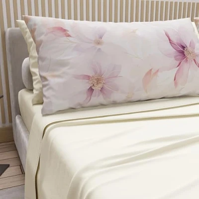 PETTI Artigiani Italiani Cotton Sheets with Pillowcases in Digital Print, Double Bed Sheet, 8 Cream Floral Print Bedding Set, 100% Made Italy
