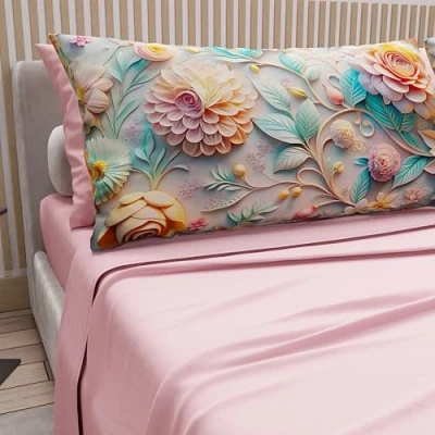 PETTI Artigiani Italiani Cotton Sheets with Pillowcases in Digital Print, Double Bed Sheet, Floral 11 Pink, 100% Made Italy